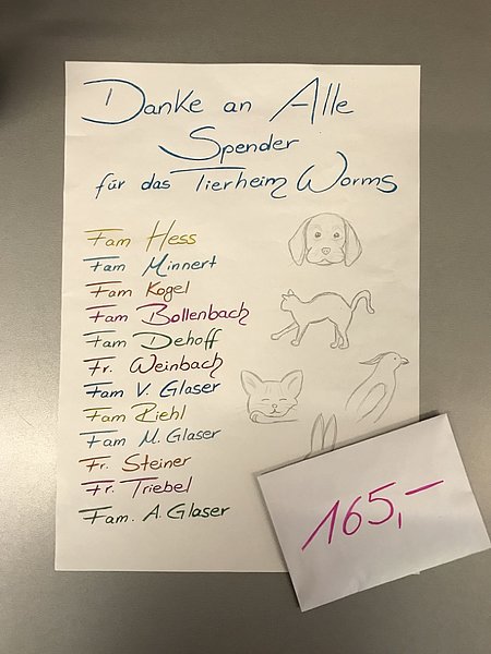 Wir bedanken uns bei Anne-Marie, die in ihrem Freundes- Bekannten- und Verwandtschaftskreis sich die Mühe gemacht hat und für uns Spenden gesammelt hat.