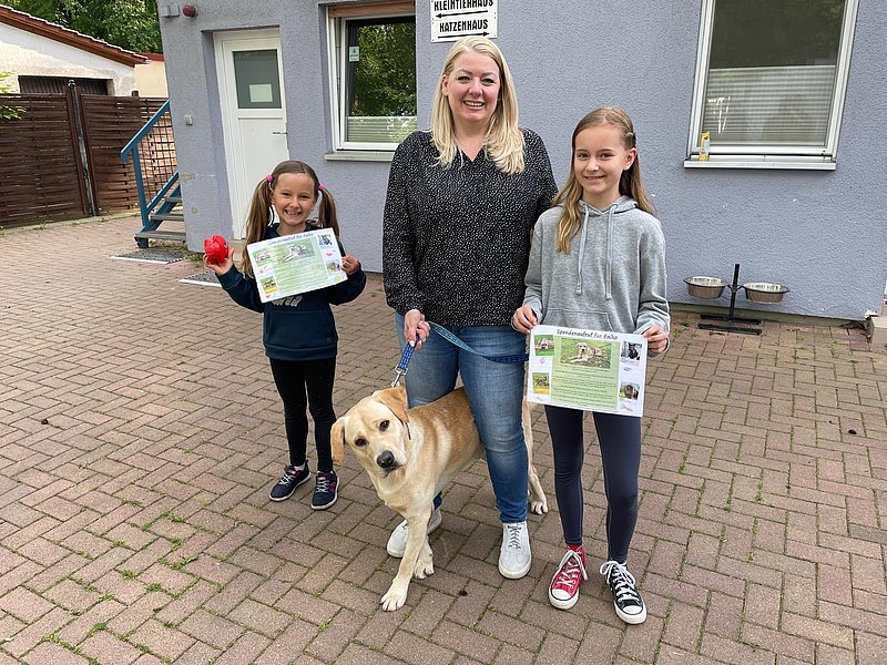 „Als wir unser Kaninchen Ella aus dem Tierheim in Worms abgeholt haben, erfuhren wir von Falko und seinem Schicksal. Daraufhin haben wir uns entschlossen gemeinsam Spenden für ihn zu sammeln. Wir bastelten Plakate und fragten Nachbarn, Freunden und Bekannte, ob sie die Aktion unterstützen möchten. Viele haben gespendet und wir alle hoffen, dass es Falko bald besser geht und er ein schönes neues Zuhause findet.“