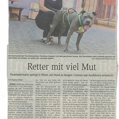 Danke von Herzen an die Feuerwehr Worms, die superschnell am Einsatzort gewesen ist und natürlich an den finalen Retter Andreas F., der Lennox das Leben gerettet hat.