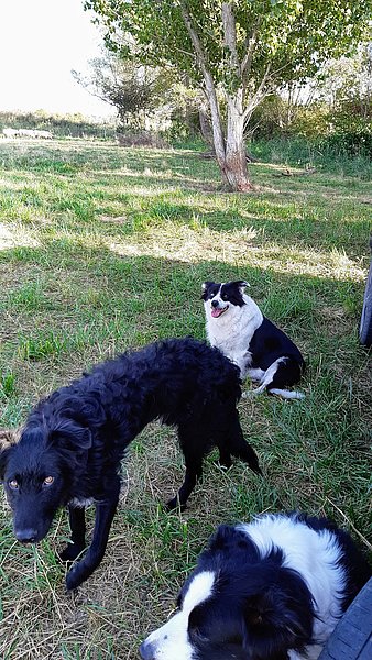 Arinella, die Rudelchefin und ihr Bruder Sonic, die ich als Junghund permanent zum Spielen auffordere und sie ab und zu im Vorbeirennen auch mal zwicke, haben viel Geduld mit mir. Ich habe halt noch sehr viele Flausen im Kopf. Was mir am meisten gefällt, ich muss weder Halsband, noch Leine tragen und darf den ganzen Tag frei in der Natur herum laufen. Bald geht es los mit meiner Ausbildung und ich lerne alles, was ein Hütehund wissen und können muss. Meine Chefin sagt, das ich das mit links machen würde, da ich alle Anlagen für einen echt guten Hütehund habe.