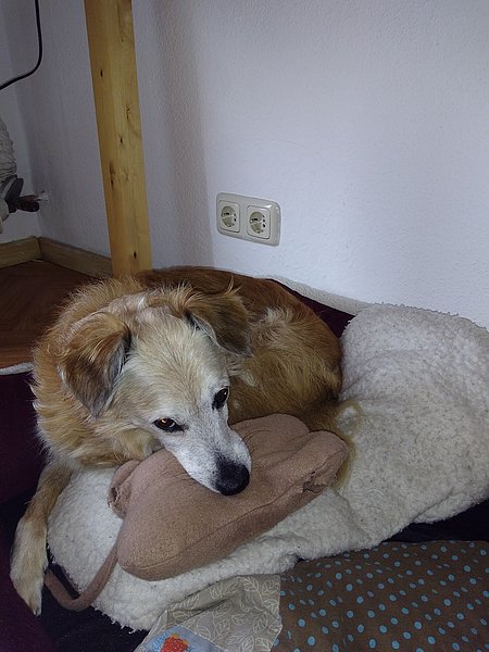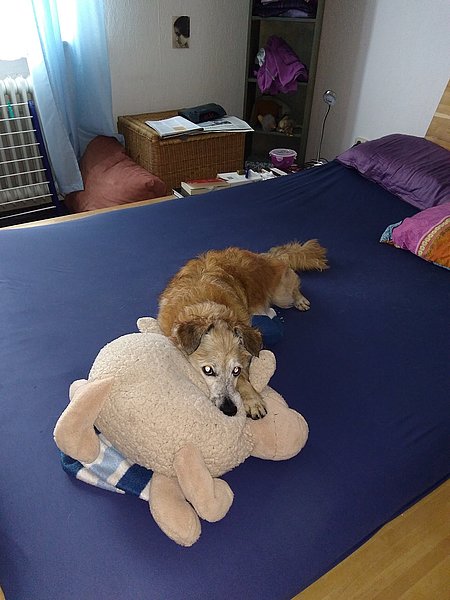 Ab und zu bleibe ich auch alleine Zuhause. 3 Stunden schaffe ich problemlos. In der Zeit verdient Frauchen Geld, sonst wird es nächstes Jahr nix mit Urlaub (Berge oder Meer? Ich bin gespannt).