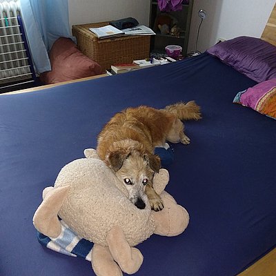 1-2 x wöchentlich holt mich eine hundeerfahrene Gassigeherin ab, wenn meine Chefin arbeiten geht. Da muss ich mich noch dran gewöhnen. Gut ist: Sie hat immer Leckerlis dabei.