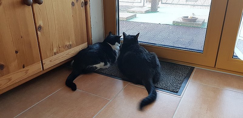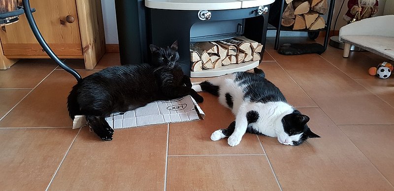 Im Herbst wurden wir fündig. Am 28. September 2018 durfte Lorenzo zu einem lieben und katzenerfahrenen Ehepaar ziehen, mit dessen Kater Baghira er sich vom ersten Augenblick an prima verstand. Unsere Befürchtung, dass er durch den Verlust seiner ersten "richtigen" Familie und seiner gewohnten Umgebung erst einmal wieder wochenlang unter einem Sofa verschwinden würde, bestätigte sich nicht. Im Gegenteil – die große Verbundenheit zu seinem Kumpel Baghira, an dessen ruhigem Wesen er sich orientieren konnte, gab ihm Mut und Zuversicht, und schon nach kurzer Zeit erreichten uns wunderschöne Fotos von einem entspannten und glücklichen Kater.