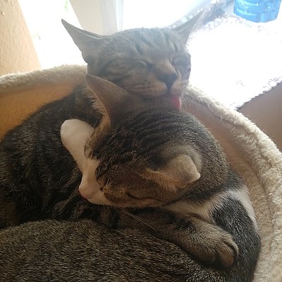 ...und dann Leute Leute war ich in nem Rieeeesenraum (die nennen das Küche) und die haben mich einfach aufn Boden gesetzt und plötzlich saß da einer vor mir der sah genau so aus wie ich, nur etwas größer und mit weiss. Der hat mich angekuckt als käm ich vom Mond. Erst hatte ich etwas Angst, aber ich war neugierig, cool da stand auch direkt Futter und Charly (so heißt der andere) war voll nett zu mir.
