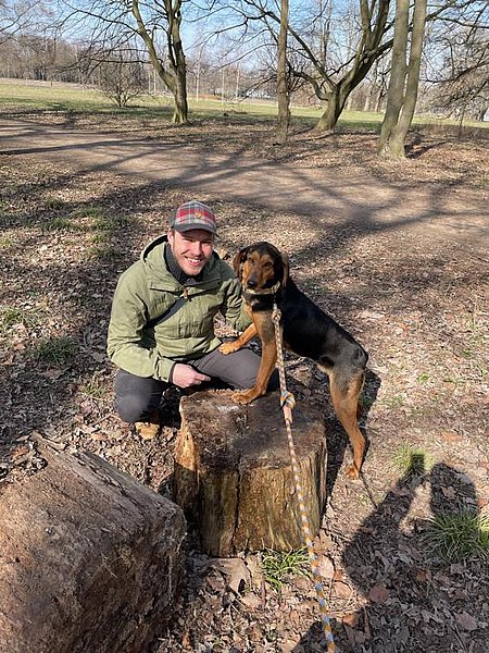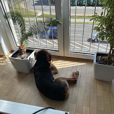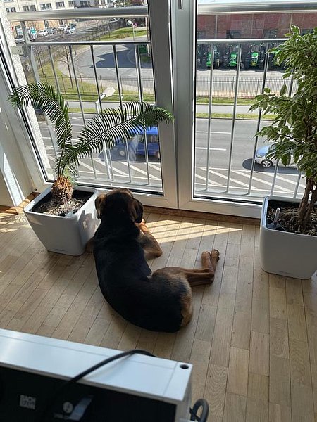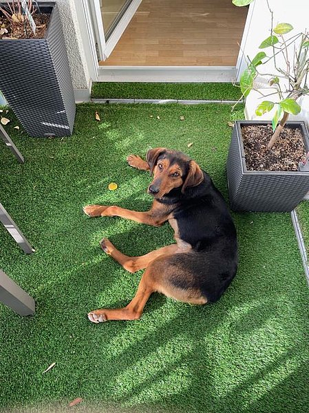 Ich kann euch sagen hier in der Männer WG läuft’s super. Anfangs war ich doch etwas zurückhaltend, ich meine klar, süß sein habe ich perfektioniert, aber ich musste dann doch erstmal gucken, wie das hier so läuft. Ist doch ganz schön was los hier in der Stadt. Aber mit meiner Mentalität habe ich das bisher souverän weggesteckt. Naja, und ich bin halt auch sehr neugierig, vor allem draußen :-). Das kann für die zwei Jungs (die meist hinter mir laufen) schon mal anstrengend werden. Aber ruhig und besonnen schaffen wir das. Mittlerweile kenn ich meine Wege und bleibe auch an lockerer Leine. Ich habe mir sagen lassen, dass dies gewünscht ist. Stellt euch vor, Sachen gibt es. Wir sind aktuell an Online Trainings dran. Das macht auch mir ordentlich Spaß.