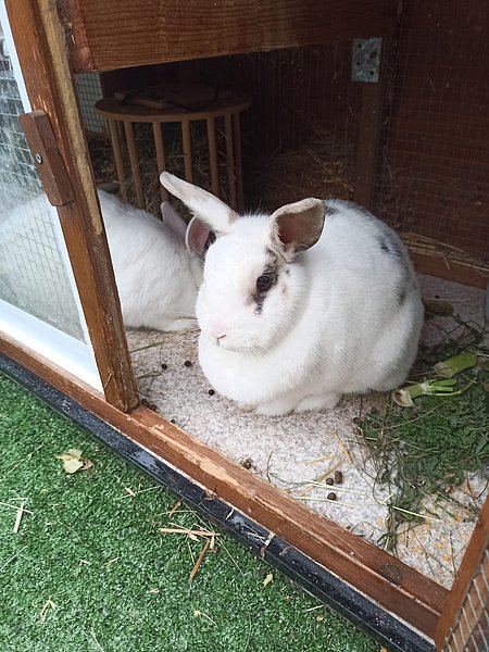 Ich bin nun schon seit drei Wochen bei meiner neuen Familie und meinem neuen Freund Wynter. Wir beide sind mittlerweile kaum mehr auseinander zu bekommen und machen alles zusammen. Vom Fressen, den ganzen Tag gemeinsam kuscheln, uns gegenseitig putzen oder durchs Gehege flitzen – immer hängen wir zu zweit rum ;)