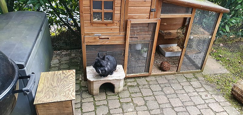 Sofern wir nicht gerade durch den Garten flitzen oder uns jagen, sitzen Cookie und ich den ganzen Tag zusammen, sei es auf unserer Aussichtsplattform - Po an Po -, in unserer Lieblingsecke im Garten oder tagsüber eng bei einander zum Entspannen und Schlafen in unserer Kuschelecke in der Schutzhütte. Aber meistens sitzen wir irgendwo draußen, auch das kalte Wetter oder Regen machen uns gar nichts aus. Dank Homeoffice können wir auch mehr auch im Garten sein als normalerweise, das ist natürlich super, tagsüber sind wir aber trotzdem lieber drin und entspannen oder putzen uns ausgiebig gegenseitig. Aber morgens und nachmittags geht es dann raus, am liebsten, wenn es dunkel ist. Da mein Fell so schön schwarz ist, suchen meine Menschen mich immer, das ist ein Spaß! - zumindest für mich. Anfangs sind sie ohnehin etwas verzweifelt mit mir - ich bin schon etwas durchtrieben und stifte Cookie auch zu allerhand Unsinn an: sei es den Garten umzugraben oder andere diverse Entdeckungstouren außerhalb unseres Gartens zu unternehmen. Sie haben nun nochmal überall die Zäune erhöht; sie sagen vor mir hat das noch keiner gemacht. Jetzt scheint es alles ausbruchsicher zu sein, aber ich gebe nicht auf! Der Zaun wird täglich überprüft, vielleicht finde ich ja doch noch irgendwo eine Schwachstelle… Aber in der Zwischenzeit fällt mir sicher bald etwas Neues ein, um die beiden ein bisschen zu ärgern…