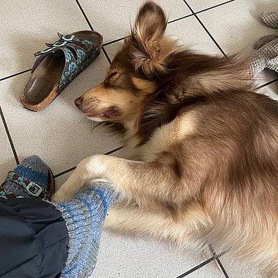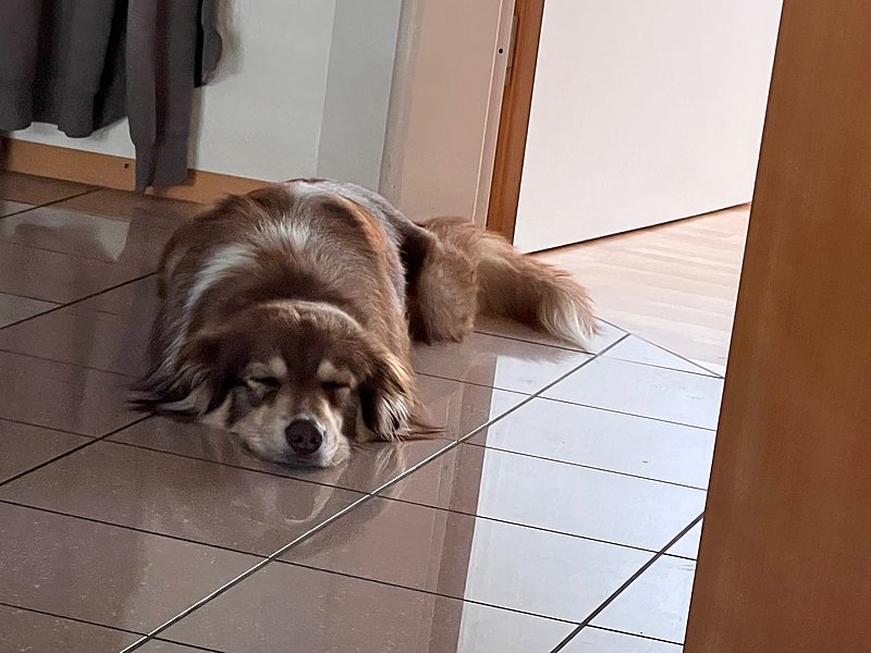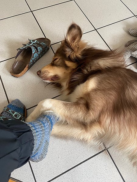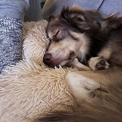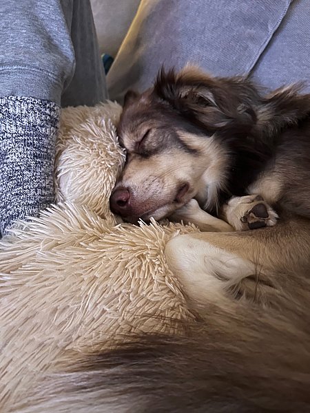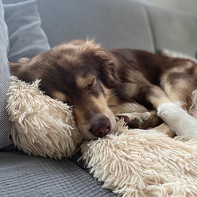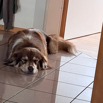 Aber mein Rudel hat schon echt Geduld und wenn ich dann auch mal zu Besuch bei deren Familie bin, habe ich endlich wieder eine eigene große Herde, auf die ich als Australian Shepherd aufpassen kann - oder spielen oder raufen oder Gassi gehen oder Kirchenglocken anbellen oder Fliegen jagen oder dem Nachbarn bescheid sagen, dass er nicht so laut sein soll oder mich einfach auch mal täglich zehn mal durchknuddeln zu lassen. Auch wenn mein Frauchen und Herrchen sagen, dass ich gern auch bisschen chillen und schlafen kann, ich bin überhaupt nicht müde, gar nicht, auch wenn mir jetzt gerade wieder die Augen zufallen, ICH BIN NICHT MÜDE....ich bin total happy und mein neues Rudel ist auch happy mit mir...