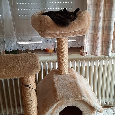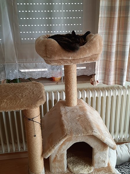 Ich fühle mich hier sehr wohl, kann mich durch die Katzenklappe frei bewegen, spielen und schmusen, wenn ich Lust dazu habe und werde in Ruhe gelassen, wenn ich eine Pause brauche.