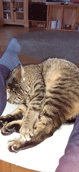 Sie ist eine solche Bereicherung, wie es sich in Worten kaum ausdrücken lässt: sie ist total verschmust, macht nichts kaputt, holt kein Essen vom Tisch oder der Küchenarbeitsfläche, eine grau getigerte EKH Katze, die einfach glücklich macht.