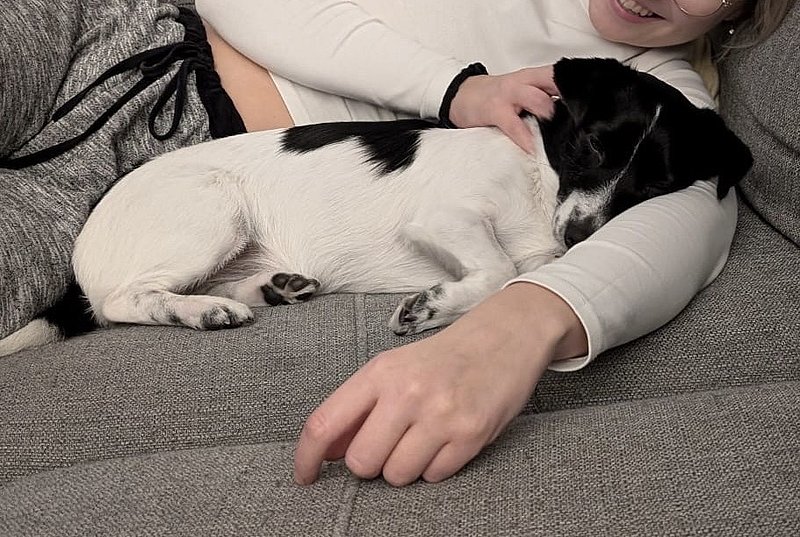 Nachdem ich zur Vermittlung freigegeben wurde, lernte ich sehr schnell meine neuen Besitzer kennen. Die konnten nämlich gar nicht abwarten, bis ich zur Vermittlung freigegeben wurde. Weil ich so ein kleiner aufgedrehter Wusel bin, konnte ich ihre Herzen im Sturm erobern und es war eigentlich von Beginn an klar, dass sie meine neue Familie werden würden.