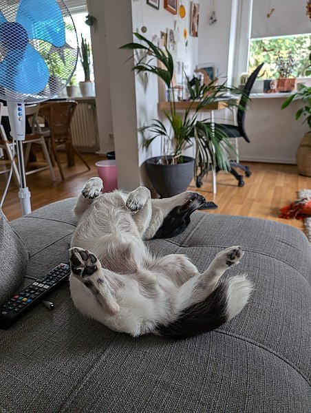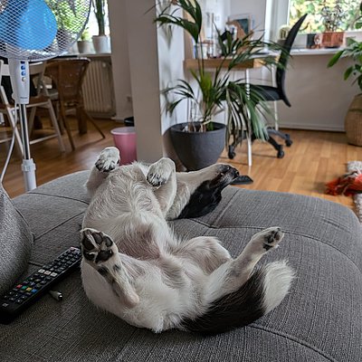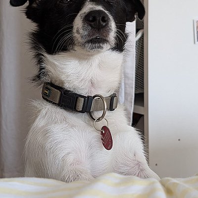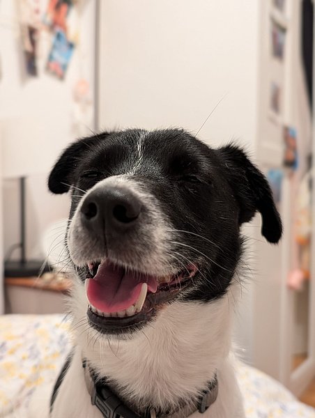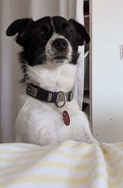 Am Anfang mochte ich gerne meinen Abstand und wollte immer nur kurz gestreichelt werden, heute liebe ich es ganz nah bei Herrchen und Frauchen zu liegen und kann gar nicht genug Streicheleinheiten bekommen. Der schönste Moment des Tages ist es, wenn sich Herrchen oder Frauchen am Morgen bewegen und ich auf sie springen und wach schlecken kann. Frauchen sagt immer, dass sie seitdem ich da bin, keinen Wecker mehr braucht, weil ich sie pünktlich um 6:30 (nach der Uhrumstellung um 5:30) wecke.