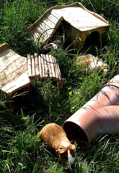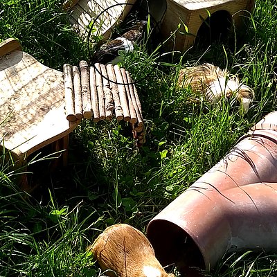 Als ich dort ankam, wurde ich als Erstes vom Chef ( www.tierheimworms.de/vermittlung/happy-end/happy-ends-2018/happy-rico/) beschnüffelt. Der ist ziemlich gechillt und hat ein echt cooles Fell, daher haben wir uns gleich prima verstanden. Die beiden Mädels waren mir auch sofort sympathisch. Eines ist schon nach einer Stunde zum gemeinsamen Abhängen in mein Häuschen vorbeigekommen. Wir haben meist viel Spaß miteinander und das Essen passt auch - ich wusste gar nicht, wie hoch Gras wachsen kann!