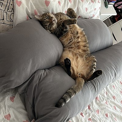 Ansonsten habe ich leider große Angst vor lauten Geräuschen. Sei es die Müllabfuhr (die ich immer fleißig anknurre), die Nachbarn im Hausflur, die Klingel oder manchmal auch eine Chipstüte, ich erschrecke sehr schnell. Ich bin auch ziemlich tollpatschig! Als große Katze ist es eben doch nicht immer so einfach, graziös zu wirken… naja.