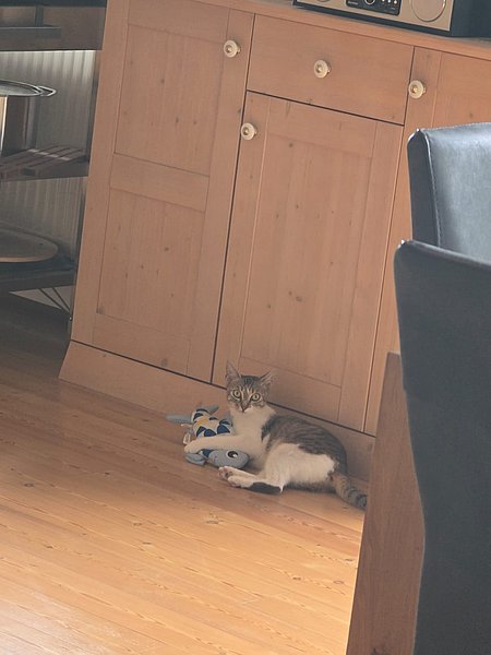 wir haben vor einigen Wochen Trudi gesehen und uns sofort verliebt. Zu unserer Freude konnten wir sie auch gleich mitnehmen. Da sie auf ihren Namen hört, haben wir diesen nicht geändert. In den ersten Tagen war sie noch etwas schüchtern, hat sich dann aber schnell eingelebt. Sie ist eine richtige Artistin, springt aus dem Stand unglaublich hoch und rennt mit Freude in einem Affenzahn durchs ganze Haus. Seit kurzer Zeit darf sie auch nach draußen, hat den Garten schon erkundet und klettert gern. Sie hat einen ausgeprägten Jagdtrieb, bisher sind ihm vor allem Insekten zum Opfer gefallen und dabei auch ein paar Dekoartikel auf den Fensterbänken. Trudi kann dann aber ganz unschuldig aus ihren großen Augen schauen und damit glaubhaft vermitteln, dass sie keine Schuld hat. Sie spricht auch mit uns, zumindest fühlt es sich so an, da sie immer mit einem kleinen Brummen antwortet, wenn wir sie mit ihrem Namen ansprechen. Wenn sie ihr Futter will, steigert sich dass zu einem lauten Miauen, bis sie ihren Willen bekommt. Sie ist eine Bereicherung für unseren Alltag und wir haben sie in unser Herz geschlossen.