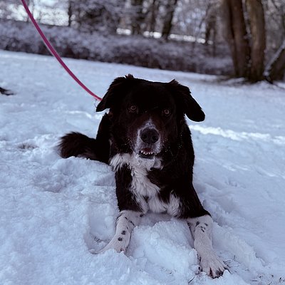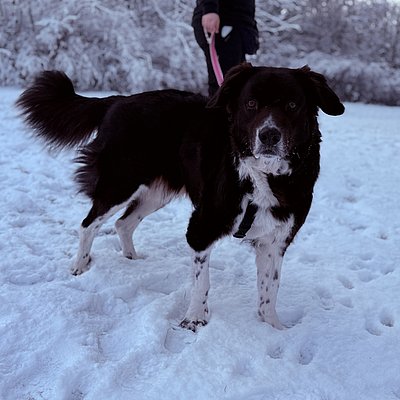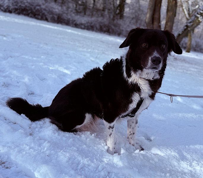 Ich bin anfangs etwas schüchtern und zurückhaltend und brauche einen kleinen Moment, um mit euch warm zu werden. Leckerlis und liebe Worte helfen da übrigens immer ;-), denn bestechlich bin ich. Wenn ich aber dann weiß, dass ihr nett seid, dann zeige ich mich sehr lieb, anhänglich und verschmust. Als Border Collie Mix bin ich natürlich auch sehr gelehrig und lerne gerne Tricks u. ä.