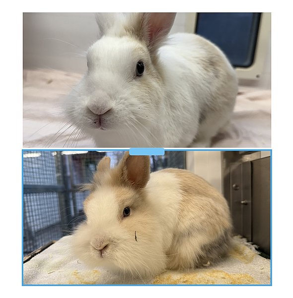Beide Kaninchen wurden aus gesundheitlichen Gründer der Besitzer bei uns im Tierheim abgegeben. Sie sind Schwestern und verstehen sich sehr gut, daher erfolgt nur eine gemeinsame Vermittlung. Leider ist Klopfer auf diverses Futter allergisch, was aber gu händelbar ist. Beide sind sehr lieb und handzahm.