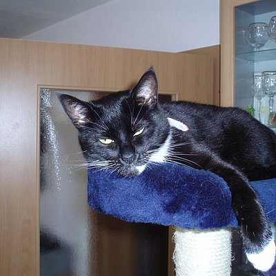 Auf der Homepage des Tierheimes Worms ist uns da sofort das hübsche Gesicht einer Katze ins Auge gestochen, insbesondere 2 große bernsteinfarbene Knöpfe im schwarzen Katzengesicht. Diese hatten uns so fasziniert, dass wir diese Katze unbedingt zu uns holen wollten.